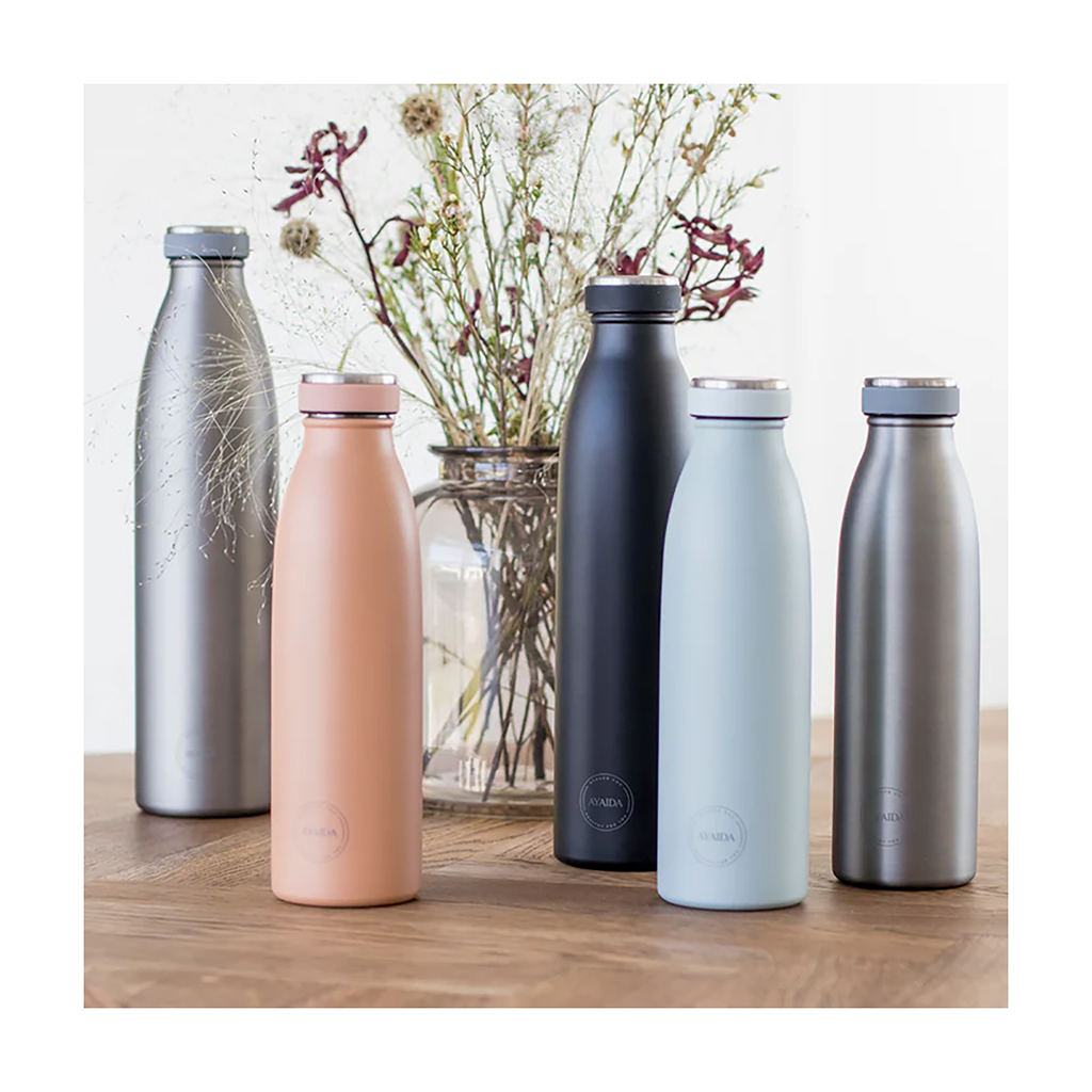 Made to last a lifetime – use this sustainable alternative to plastic bottles from AYA&IDA! Keeps your drinks cold for 24 hours and hot for 12 hours! Made from premium stainless steel. Perfect for on the go, whether you have tea, coffee, lemonade or ice-cold water in your bottle, as it does not give off any taste. Your drinks do NOT come into contact with plastic. Every AYA&IDA product is laboratory-certified and meets or exceeds the requirements of the LFGB (food suitability test).