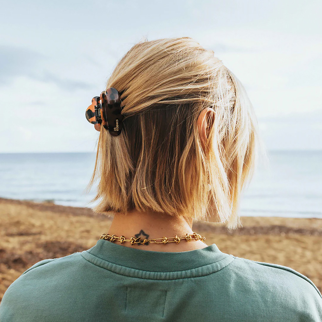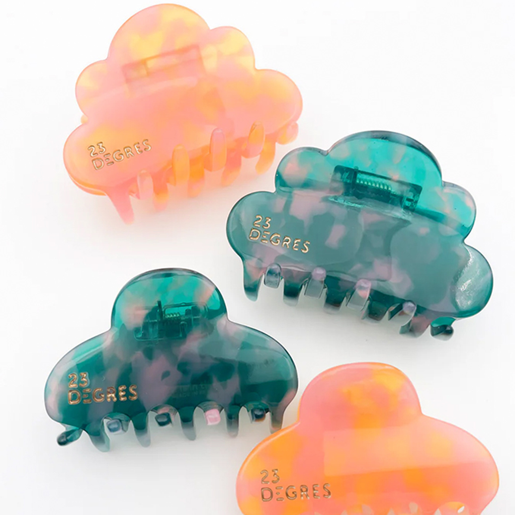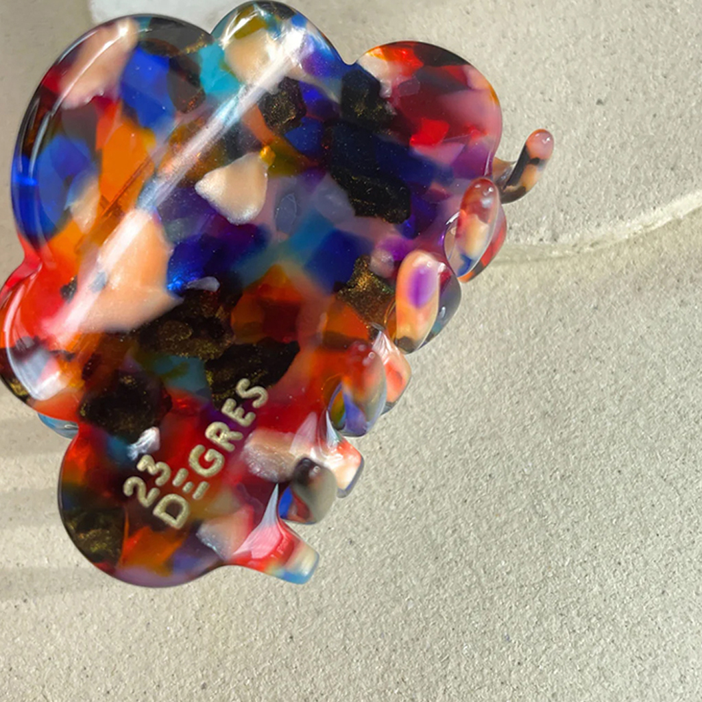 The Nuage barrette – the iconic favorite from 23 Degrés! Like all barrettes and clips from the 23 Degrés brand, the Nuage barrette is made by hand with great care in the French Jura. It is made from cellulose acetate, an environmentally friendly material of plant origin, which is obtained from cotton and wood fibers – mainly from France or Italy. The Nuage barrette impresses with its soft, original shape and ensures perfect hold for all hair types. Whether in a casual bun or a half updo, it is suitable for fine, thick, curly or straight hair and stays in place all day without slipping. Here it is shown in the “Sunny” color variant – ultra-bright colors that bring a bit of sunshine into everyday life. Multicolored, pink, blue, iridescent or matte – a variety of shades from which the choice becomes the greatest challenge.