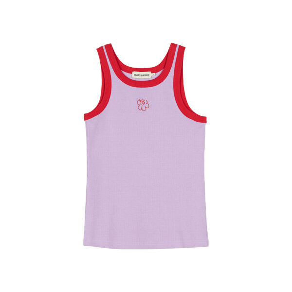 The Surrea tank top is made from heavyweight organic cotton rib jersey and has a slim fit. The product contains 2% elastane. The top has a ribbed round neckline and the Piirto Unikko flower embroidered on the front. Piirto Unikko is a stylized, airy version of the popular flower designed by Maija Isola in 1964. It is a nod to minimalism and emphasizes the graphic lines of the Unikko pattern. Slim fit at the shoulder line and at chest height, but not necessarily at the waist or hips.