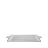 Dieses Alumunium-Tablett hat zudem Gumminoppen auf der Oberfläche eingearbeitet, damit das Geschirr nicht verrutscht.