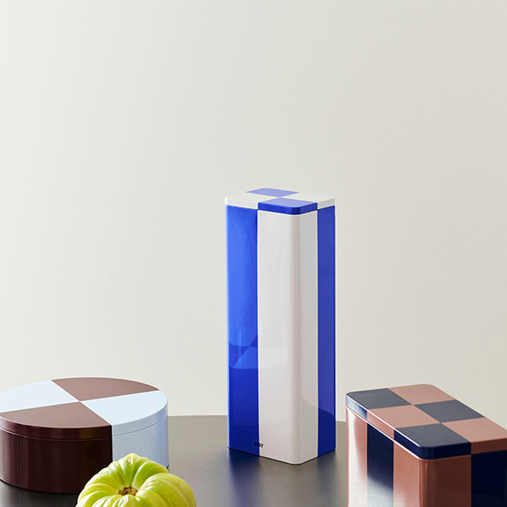 Die Aufbewahrungsbox Tin von HAY ist Teil ihrer exquisiten Kollektion funktioneller und dekorativer Aufbewahrungsboxen. Mit ihrem farbenfrohen Karomuster und der glänzenden Oberfläche sind diese Dosen eine elegante und moderne Ergänzung für jedes Zuhause. Deckel und Behälter passen perfekt zusammen und bilden eine glatte und nahtlose Oberfläche, während sie gleichzeitig einen luftdichten Verschluss gewährleisten – ideal für die Aufbewahrung von trockenen Lebensmitteln. Tin Boxen sind in einer Vielzahl von Grössen, Formen und Designs erhältlich und bietet eine vielseitige und stilvolle Lösung für Ihre Aufbewahrungsbedürfnisse.