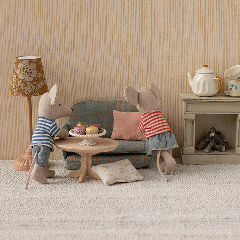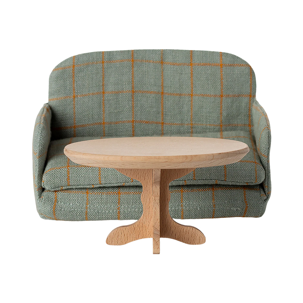 Ein hölzerner Couchtisch von Maileg, der gut zum Schlafsofa in Mausgrösse passt. Dieser Tisch eignet sich perfekt für das SuitCasa (Kofferhaus) und ist mit Sicherheit der perfekte Ort für gemütliche Tee- oder Kaffeekränzchen.