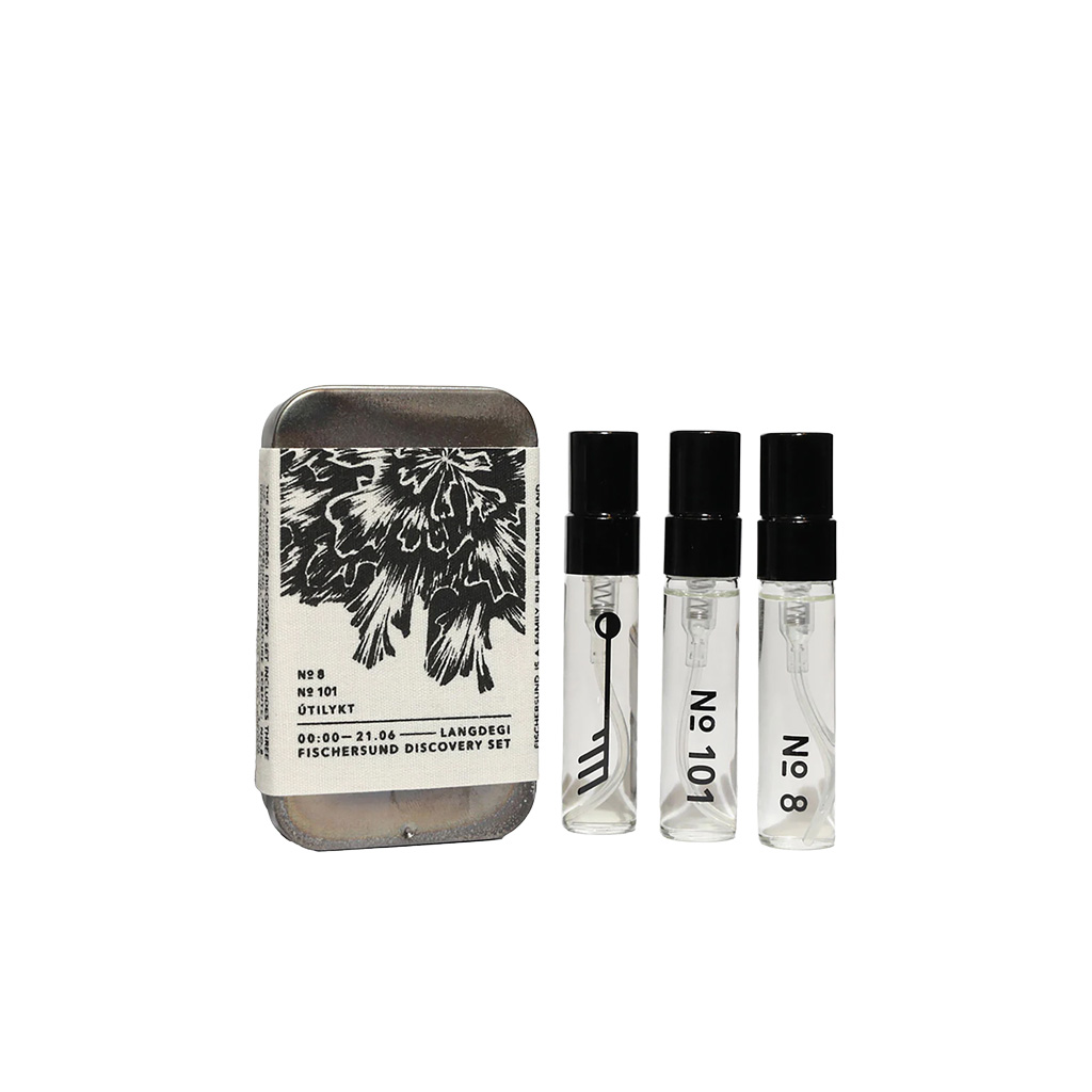 Langdegi bedeutet „der längste Tag“, und an jedem 20. Juni dauert das Licht den ganzen Tag lang an. Das Set besteht aus Düften, die eine leichte, erfrischend knackige Note haben, die an die langen Sommernächte erinnern, in denen die Sonne nie untergeht. Das Set befindet sich in einer handgefertigten Dose, die von Vater Birgir hergestellt wurde, und enthält die Düfte No. 8, No. 101 und Útilykt. Eine perfekte Möglichkeit, Ihren neuen Lieblingsduft zu entdecken.