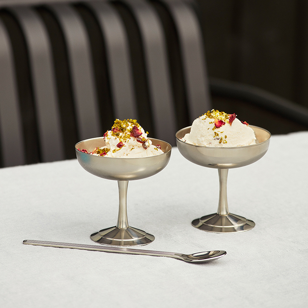 Der italienische Eisbecher aus Edelstahl von HAY ist der perfekte Begleiter, um Ihre kalten Getränke zu genießen und leckere Desserts mit Stil und Funktionalität zu servieren. Gefertigt aus hochwertigem Edelstahl, vereint er Ästhetik und Langlebigkeit in einem zeitlosen Design. Die doppelwandige Konstruktion hält Ihre Getränke und Desserts länger kalt, so dass Sie sie genießen können, ohne sich Gedanken über die Erwärmung zu machen. Die Konstruktion aus Edelstahl macht ihn außerdem leicht zu reinigen und zu pflegen, was ihn zu einem praktischen Gegenstand für den täglichen Gebrauch macht oder wenn Sie Ihre Desserts in einer dekorativen Lösung servieren möchten.