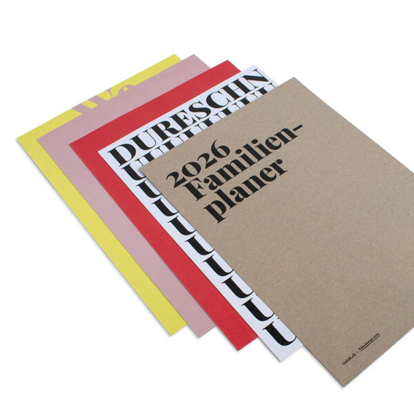 Der Tadah Familienplaner 2026 ist da – wie immer übersichtlich, stilvoll und mit einer Prise Witz gestaltet. Im Jahreskalender lassen sich die Termine von bis zu fünf Familienmitgliedern eintragen – so haben Sie den ganzen Monat auf einen Blick. Und das Beste: Ist der Monat vorbei, wird das Kalenderblatt zum Mini-Poster! Auf der Rückseite finden Sie nämlich 12 grossartige Tadah-Sätze bzw. Illustrationen, die garantiert Laune machen.
