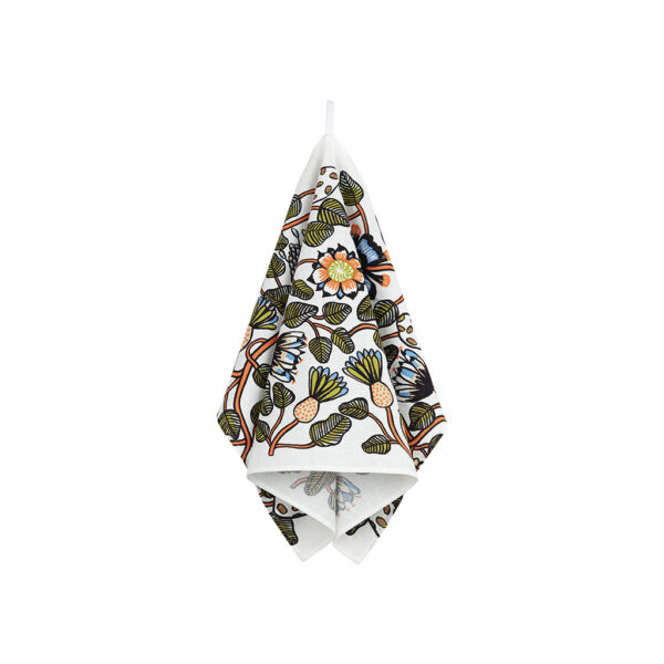 Das Tiara Küchentuch 47×70 cm von Marimekko ist ein Handtuch aus Bio-Baumwolle und Leinen mit dem floralen Tiara-Muster von Erja Hirvi. Es wird in Helsinki bedruckt und ist mit einer praktischen Aufhängeschlaufe versehen. Ein farbenfrohes und funktionales Detail, das Ihre Küche bereichert. Das Geschirrtuch Tiara ist sowohl funktional als auch dekorativ. Das lebendige Tiara-Muster wurde von Erja Hirvi entworfen. Inspiriert von der üppigen Vegetation der Natur, verleiht das Muster Ihrer Küche einen künstlerischen Touch. Das Geschirrtuch besteht aus einer Mischung aus Baumwolle und Leinen, wobei 57 % der Baumwolle aus biologischem Anbau stammen, was es sowohl langlebig als auch praktisch macht.