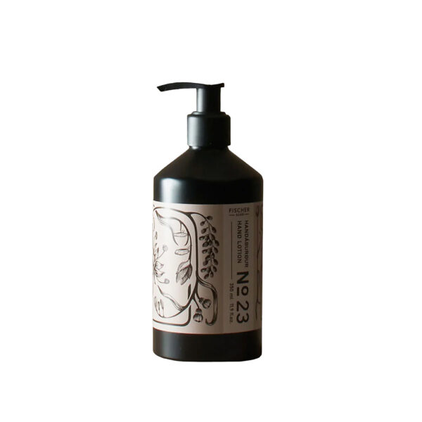 Die neue beruhigende Handlotion Nr. 23 spendet Ihren Händen Feuchtigkeit und duftet zart. Schützen und pflegen Sie Ihre Hände mit der nährenden Formel aus feuchtigkeitsspendendem Wiesenschaumkrautöl und Vitamin E-reichem Sonnenblumenkernöl in Kombination mit einem warmen, vom alten Reykjavik inspirierten Duft. No. 23 ist Fischersund’s Originalduft mit Noten von Anis, schwarzem Pfeffer, Tabaksamen und Sitka-Fichte. Jede Handlotion wird in Island hergestellt und ist vegan und frei von Tierquälerei. Jede Aluminiumflasche ist mit einer einzigartigen, künstlerischen Illustration der Kreativdirektorin und Mitbegründerin Inga Birgisdottir verpackt und wird von einem nachhaltigen Stoffbeutel begleitet, der als Andenken dient.