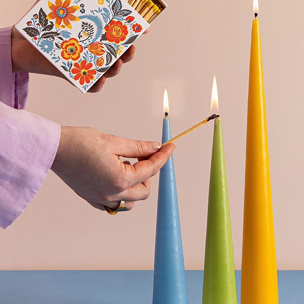 - Produktpflege: Diese Streichhölzer werden aus natürlichen Produkten hergestellt und können strukturelle Mängel aufweisen. Obwohl wir uns die Zeit nehmen, die Streichhölzer zu testen, können wir nicht jedes einzelne Stück prüfen. Zünden Sie die Streichhölzer daher vorsichtig (ganz langsam!) und von sich weg über nicht brennbaren Oberflächen an.