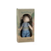 Diese Maus heisst LouiMax und ist ein wirklich abenteuerlustiger Kerl. Er trägt ein blau gestreiftes Shirt und eine Jeanshose. Die Maus hat Magnete in den Händen und wird in einer schönen Box verkauft. Die Maus hat die Grösse des großen Bruders.