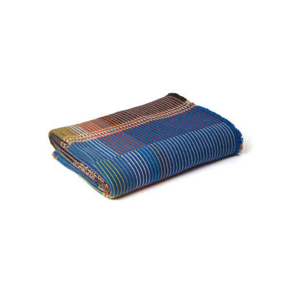 Anning besteht aus breiten Streifen in leuchtendem, tiefem Türkis und erdigem Seegrasgrün, die sich zwischen einem warmen Pfirsichton befinden. Kleinere Akzente in Rot, Mint und Grau sind überall zu finden. Die Wallace & Sewell Pinstripe-Überwürfe sind aus Merino-Lammwolle gewebt und kombinieren kräftige Farbblöcke mit feinen, detaillierten vertikalen Streifen. Dieses doppelseitige Design hat außerdem einen kontrastierenden, pixeligen Rand und ist eine atemberaubende Ergänzung für jeden Raum.