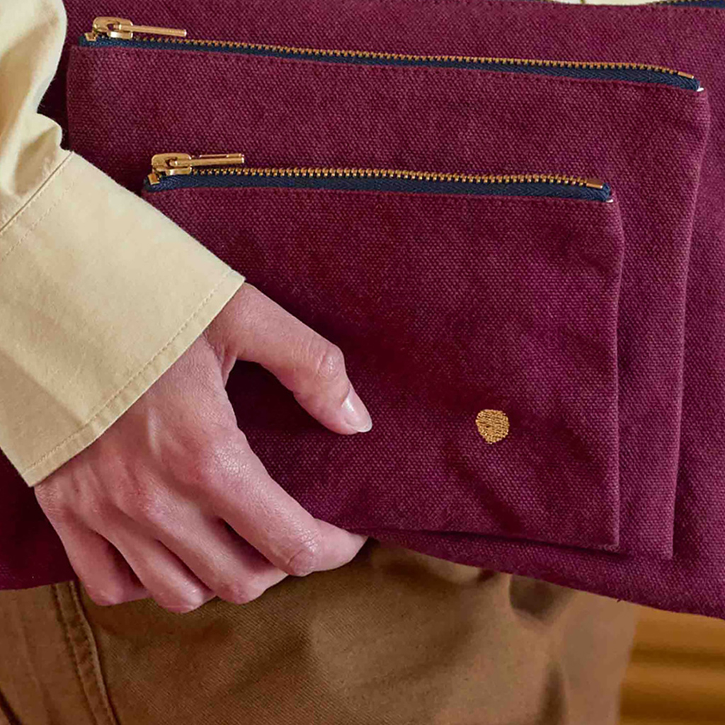 Mit den Bum Bags von La Cérise sur le gâteau bleibt Ihre Tasche überall gut organisiert. Nehmen Sie alles Wichtige mit, wohin Sie auch gehen. Der Stoff besteht zu 100 % aus biologisch angebauter Baumwolle und ist extrem widerstandsfähig. Hergestellt in Portugal unter Verwendung kurzer Vertriebswege, um den CO2-Fussabdruck zu reduzieren.