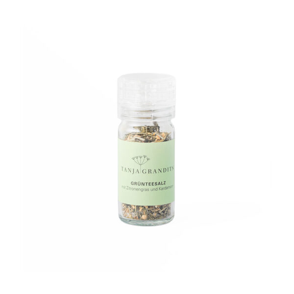 - Zutaten: Steinsalz (Persiensalz) 64.7%, Grüntee (Sencha, China) 18%, Ingwer, Zitronenmyrthe, grüner Chili (Jalapeno), Zitronengras 2.9%, Zitronenschale, Zimt, Kardamom 2%, Orangenschale